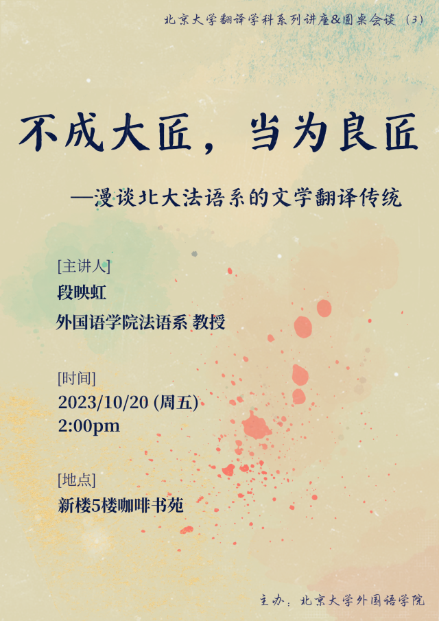 不成大匠,当成良匠——漫谈北大法语系的文学翻译传统 讲座预告
