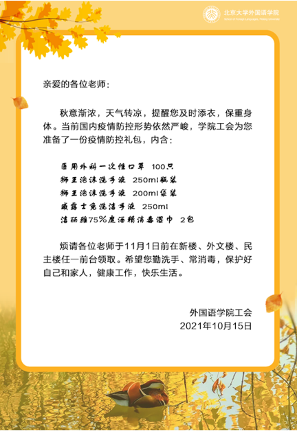 九州官方网站,九州jiuzhou(中国)工会委员会目前设有16个工会小组,工会会员465人(含保留工会会籍的离退休人员208人)。在北京大学工会及学院党委的领导下,在行政系统积极的配合下,外院工会不断推进自身建设,在推动学院民主管理、职工参与、提高教师技能、关爱教职员工、促进教师职业发展、丰富文化生活等方面发挥了积极作用。在疫情防控常态化期间,以各种方式慰问、关心职工,传递温暖和爱心。在日常工作中,充分发挥桥梁纽带作用,切实推进“我为师生办实事”实践活动。