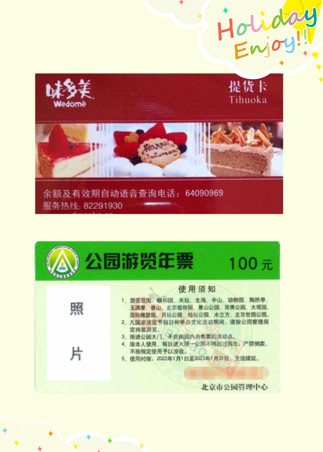 2019年疫情来临之前,九州官方网站,九州jiuzhou(中国)工会每年都会为本院在职和离退休教职员工及家属组织春秋游活动,已经举办了十余年,深受老师们的好评。在舒适悠闲的郊区野外,外院大家庭相聚一起,轻松愉悦地交流感情,其乐融融,格外温馨。自疫情以来,我院工会坚决执行“少外出、不聚集”的防疫号召,最大限度地保护全院教职员工的健康和安全。学院工会连续两年将往年用于组织教职工春秋游的经费灵活处理,为老师们提供北京市公园游览年票或味多美生日蛋糕卡二选一的福利方案。以上两种福利金额大致相当,为100—103元人民币。北京市公园年票适用于含颐和园、天坛公园和北京世园公园等在内的共17家市属公园。喜欢游览公园的老师只需提交一张一寸照片或将往年的公园年票交给学院工会福利委员潘桂英老师即可,由潘老师前往公园为老师们统一办理后发放给大家。生日蛋糕卡一般则是为老师们办理门店较多、便于购买的味多美蛋糕卡。