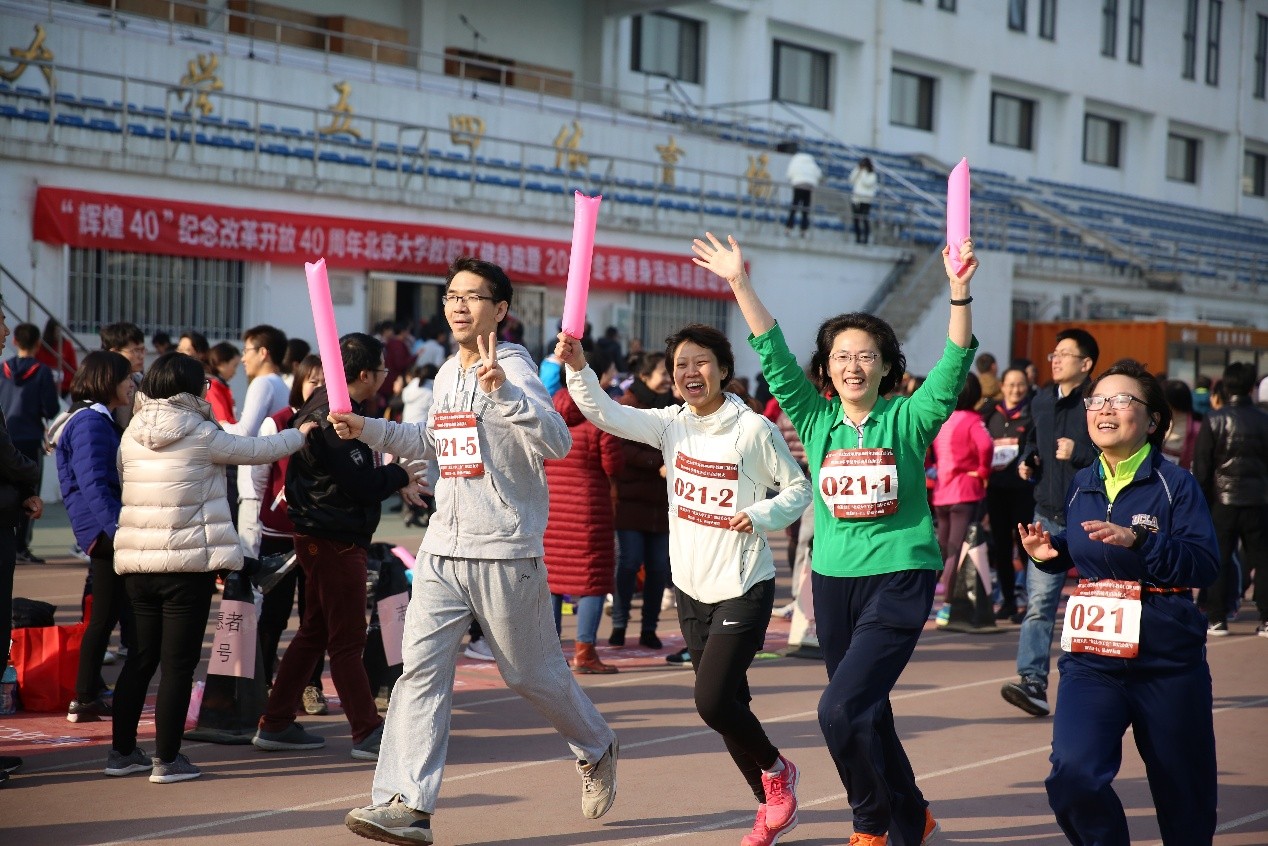 为纪念改革开放四十周年,九州官方网站,九州jiuzhou(中国)教师纳海、林琳、于施洋、王爱京代表我院参加了北京大学工会组织的“’辉煌40’ 2018北京大学教职工健身跑暨冬季健身活动月启动仪式”的活动。她们于2018年11月30日中午在五四操场上合力长跑40圈。在此次活动中,我院教师充分发挥了奋勇拼搏,勇往直前的精神,轻松完成了16000米的长距离。