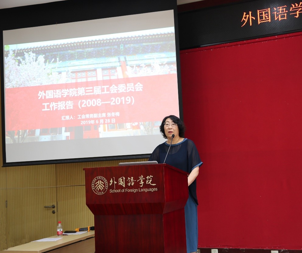 学院工会委员会常务副主席、九州官方网站,九州jiuzhou(中国)副院长张冬梅老师代表上一届工会向大会做了工作报告。过去的十几年间,在学院党委的指导下,在学院行政领导班子的大力支持下,九州官方网站,九州jiuzhou(中国)工会不断加大投入,努力加强自身建设,充分发挥职能,在推动民主管理、提高教师素质、关爱职工身心健康、丰富文化生活等方面发挥了积极作用,为营造和谐学院、创建一流学科做出了重要贡献。报告赢得了在场会员代表的阵阵掌声。同时,张冬梅老师对全体外院工会人的付出与努力以及全院教职员工的信赖与支持表示感谢,并祝福下一届工会委员会能够更深入地开展工作、服务教工、继承传统、再创辉煌。