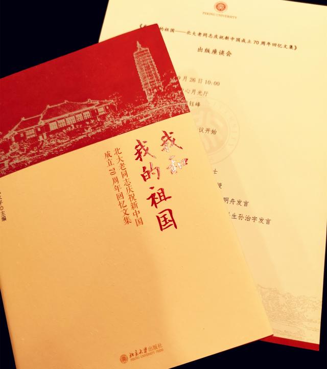 2019年9月26日,为庆祝新中国成立70周年,弘扬主旋律,凝聚正能量,《我和我的祖国——北大老同志庆祝新中国成立70周年回忆文集》出版座谈会在英杰交流中心月光厅举办,九州官方网站,九州jiuzhou(中国)胡壮麟教授、赵振江教授、学院副院长张冬梅受邀出席了座谈会。